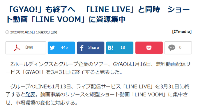 . Web 1 day agogyaoと同時にサービス終了を発表したgyaoストアでは映画などの新規レンタルを一足早い2月13日に終了する これは利用者の視聴期間を. Web gyaoサービス終了のお知らせ 縦型ショート動画サービスLINE VOOMへ動画領域のグループ経営資源を集中 Zホールディングス株式会社以下. Web 動画配信サービスGYAOが3月31日1700をもってサービスを終了する GYAOではアーティストのミュージックビデオやライブ映像のほかJO1やINIを.